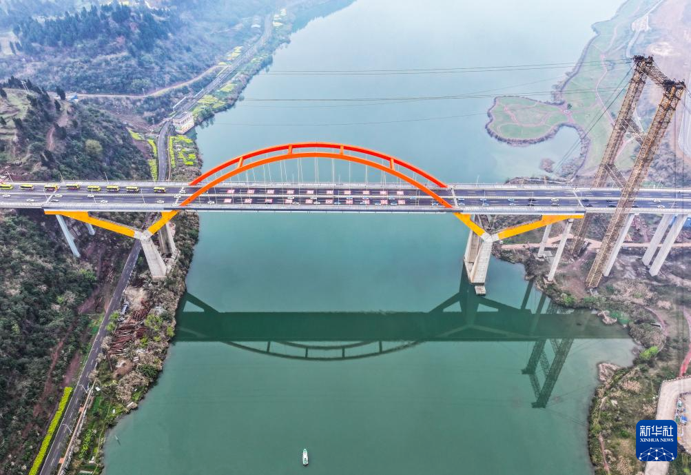 3月20日,车辆行驶在重庆潼南东升大桥上(无人机照片)。新华社记者 王全超 摄