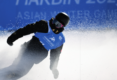 中国选手杨文龙在第九届亚冬会单板滑雪男子大跳台决赛比赛中(2025年2月10日摄)牟宇摄/瞭望