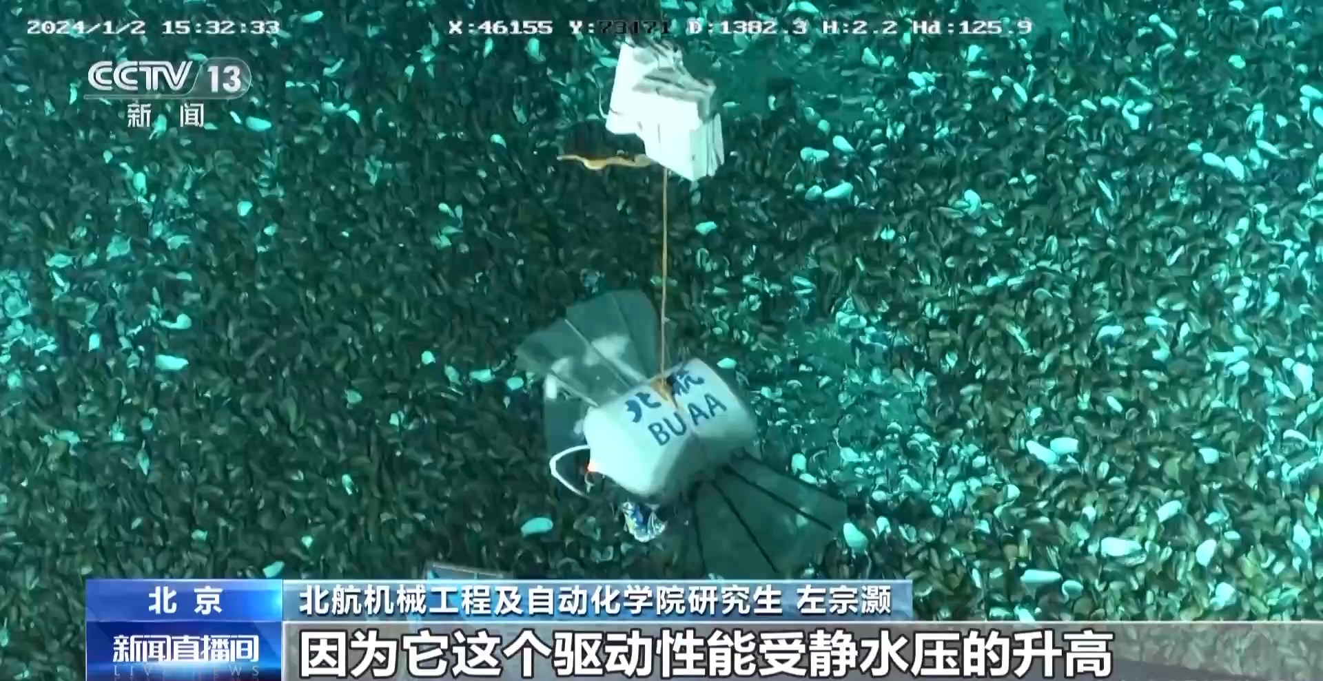北航机械工程及自动化学院研究生 左宗灏:海试的表现出乎之前实验室预期,因为它的驱动性能受静水压的升高,也有更好的表现,看到这个我们当时就非常兴奋。