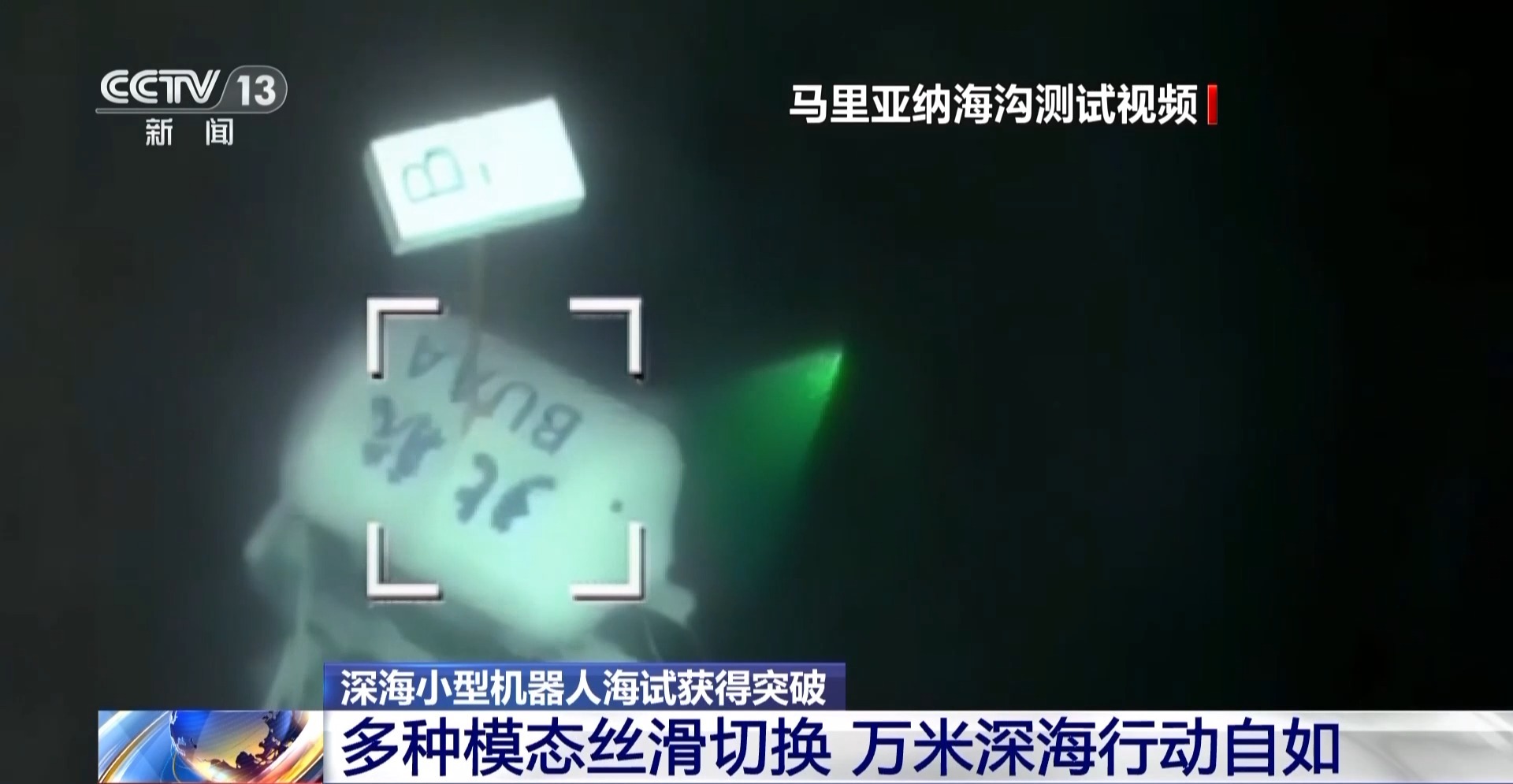北航机械工程及自动化学院教授 文力:在深海下它的运动性能和常温常压陆地上的性能相媲美,甚至有超越。打个比方,在我们实验室的水缸里面,让机器人去做一个动作,在深海下它做出来的运动的动作性能、爬行速度、游动速度几乎是一样的,它在深海的压力就像不存在一样。