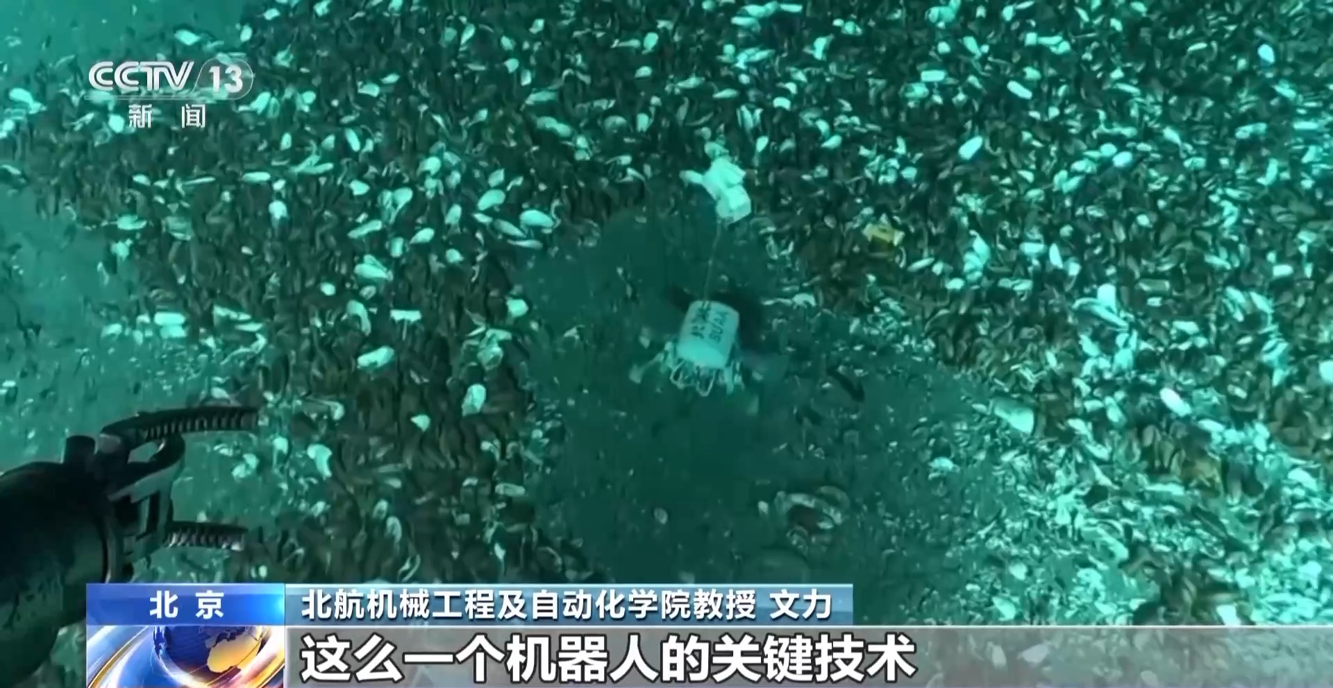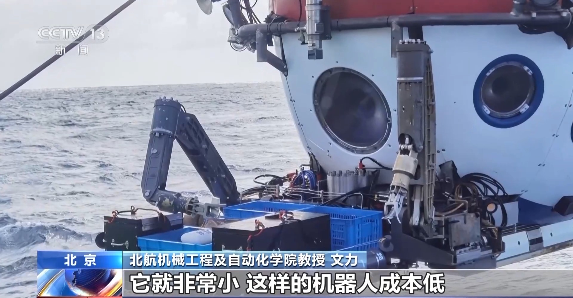 北航机械工程及自动化学院教授 文力:我们这个机器人50厘米以内、1.5公斤,非常小,成本低。同时一次性可以由潜航器携带多个机器人下去进行相关的科考或者进行作业。