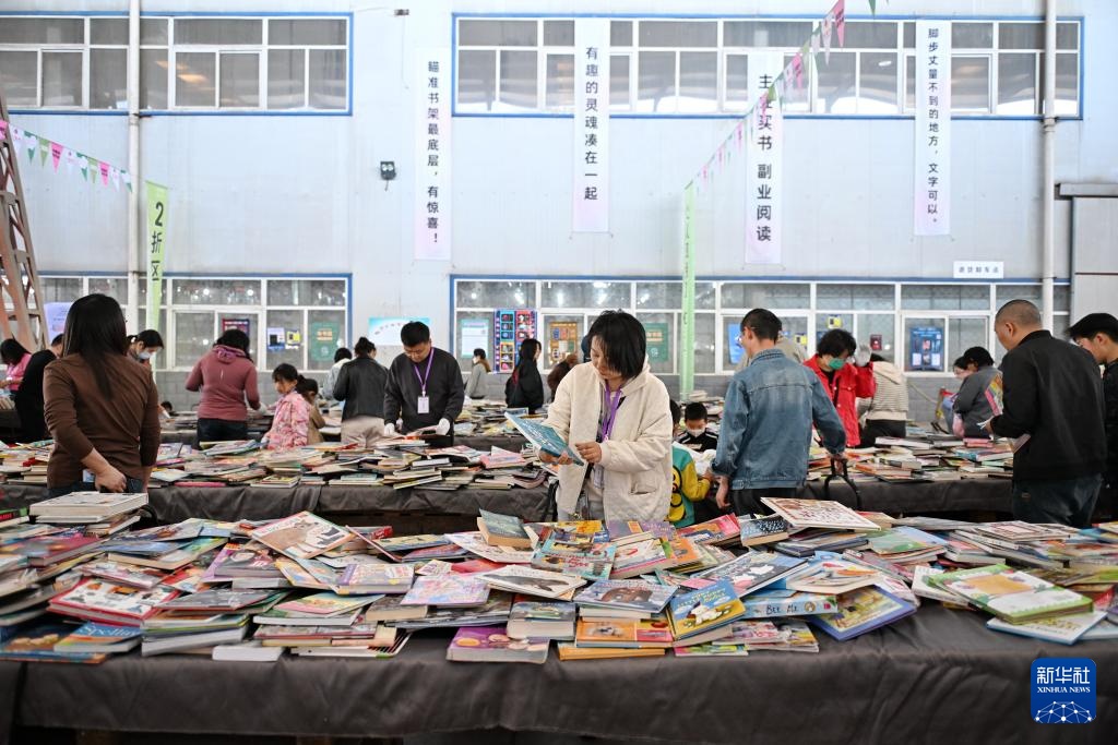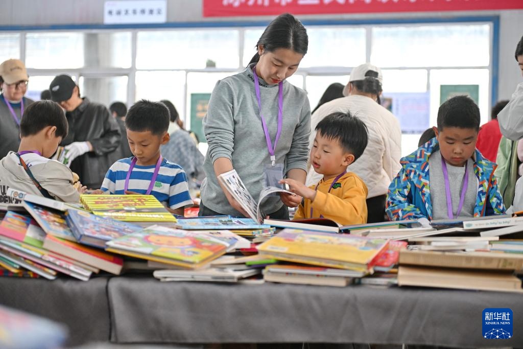 3月22日,家长带着孩子在书市上挑选图书。新华社记者 牟宇 摄