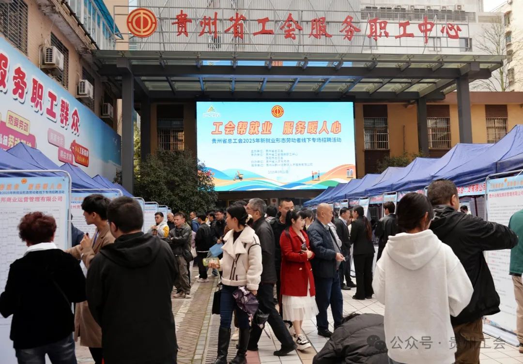 中工网讯 据贵州省总工会微信公众号消息,3月22日,贵州省总工会2025年新就业形态劳动者线下专场招聘活动在贵阳举行。
