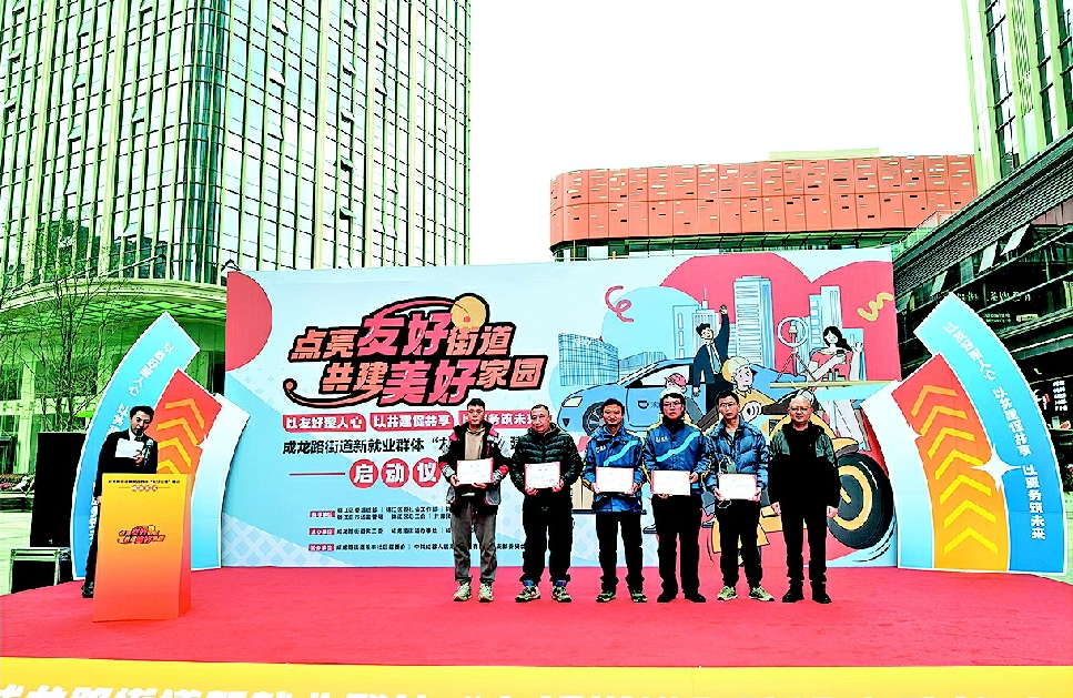 3月12日,由四川省成都市锦江区总工会联合区委组织部、区委社会工作部、区住建交局、区市场监管局、共青团锦江区委指导,成龙路街道党工委、办事处以及街道总工会主办的成龙路街道新就业群体“友好街道”建设启动仪式,在辖区R29街区广场举行。
