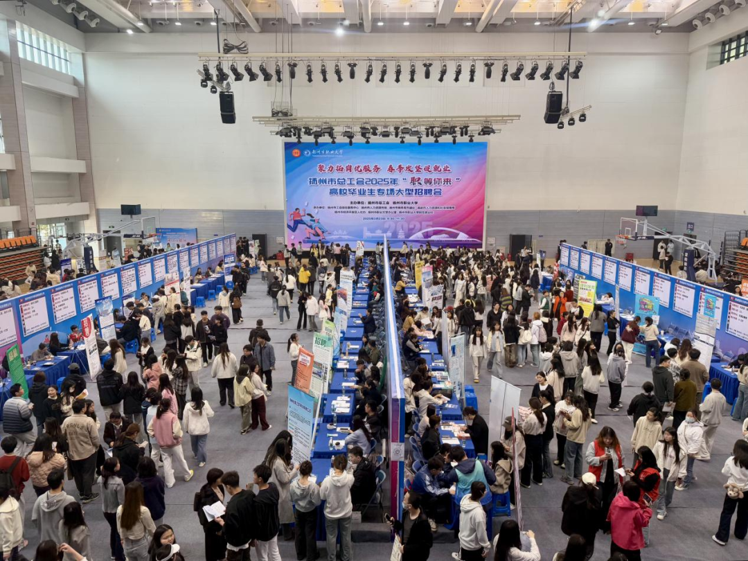 中工网讯 据扬州市总工会微信公众号消息,3月23日上午,扬州市总工会2025年“职等你来”高校毕业生专场大型招聘会在扬州市职业大学体育馆举办。本次活动由扬州市总工会、扬州职业大学主办,多部门联合承办。
