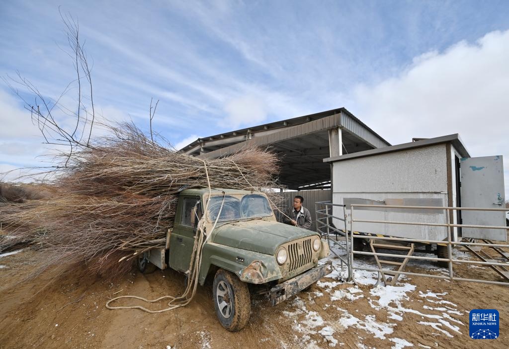 3月25日,锡林郭勒盟正镶白旗的农牧民将红柳枝条打包装车。新华社记者 马金瑞 摄