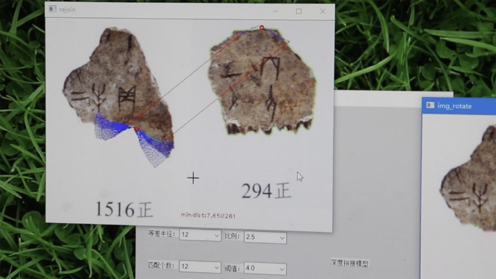 安阳师范学院甲骨文信息处理教育部重点实验室的电脑上,甲骨碎片正在自动缀合。新华社记者 袁月明 摄