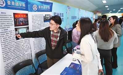 同日,由天津外国语大学和河西区人力资源和社会保障局等联合举办的“职”达天外、成“就”梦想——2025届毕业生春季校园双选会暨全国城市联合招聘高校毕业生春季专场招聘会在天津外国语大学开展,吸引了173家用人单位参加,提供了近700个岗位。招聘会现场,同学们积极投递简历,了解薪资待遇、地理位置等,企业招聘人员悉心解答、多方招揽人才,达成初步就业意向近700人。“从招聘会情况来看,超过70%的招聘单位是民营企业,岗位需求以外语类、金融类人才为多。”天津外国语大学招生就业处副处长张瑶告诉记者,这次招聘会也体现了该校一直以来深入开展访企拓岗行动的成果,有100余家用人单位是通过学校多形式走访、邀约企业,增加企业对学校优势专业的了解后吸引的新增入校招聘单位。“我们还将积极发挥校友等资源优势,不断拓展访企拓岗的宽度与深度,主动对接企业发展需求,通过寻找产教融合、校企合作机遇,进一步帮助学生实现高质量就业。”