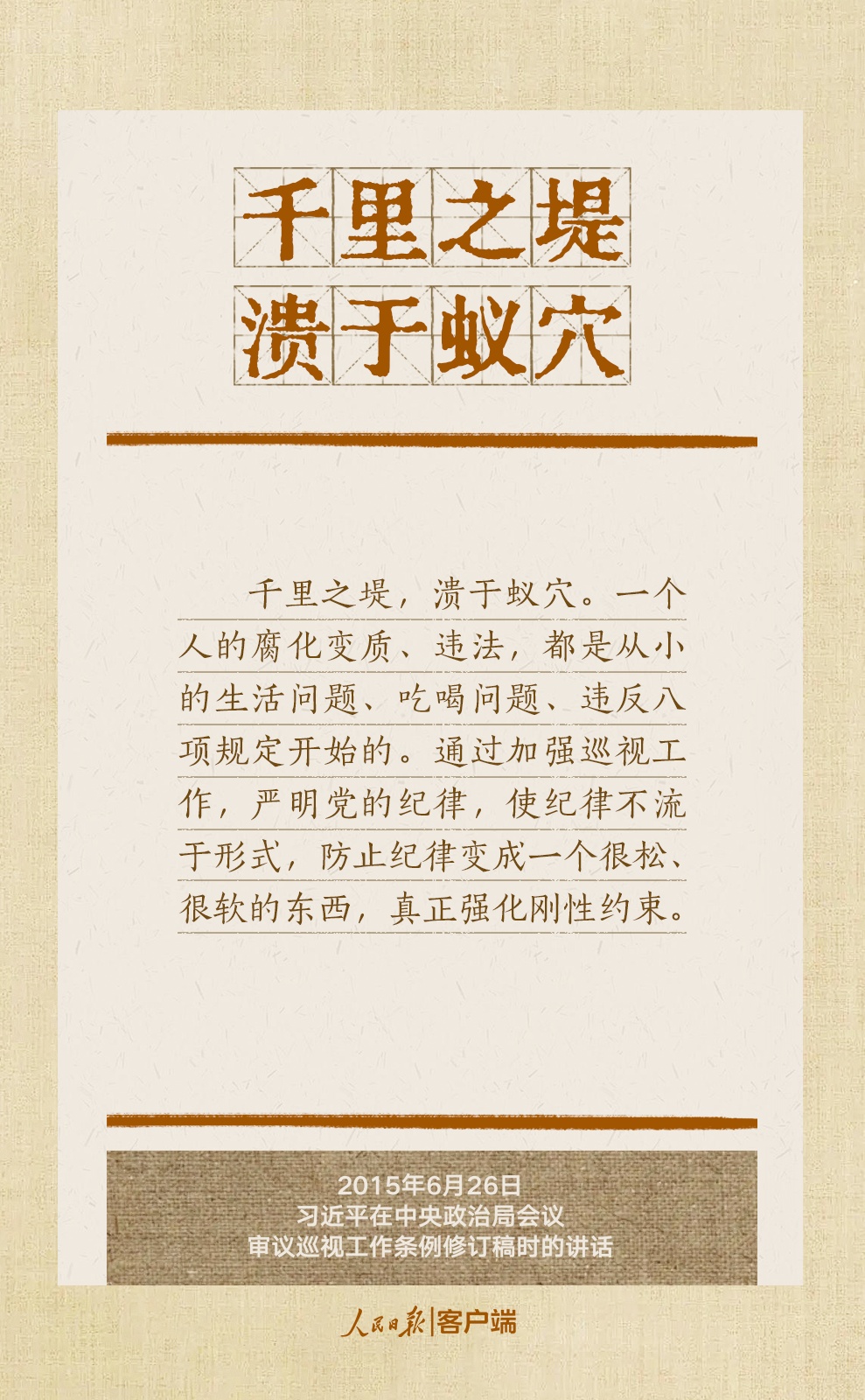 党的十八大以来,习近平总书记多次就抓好党的作风建设、贯彻落实中央八项规定精神发表重要讲话,作出重要批示,提出明确要求。“没有规矩,不成方圆”、“己不正,焉能正人”、“尽小者大,慎微者著”……总书记引用的这些古语耐人寻味。