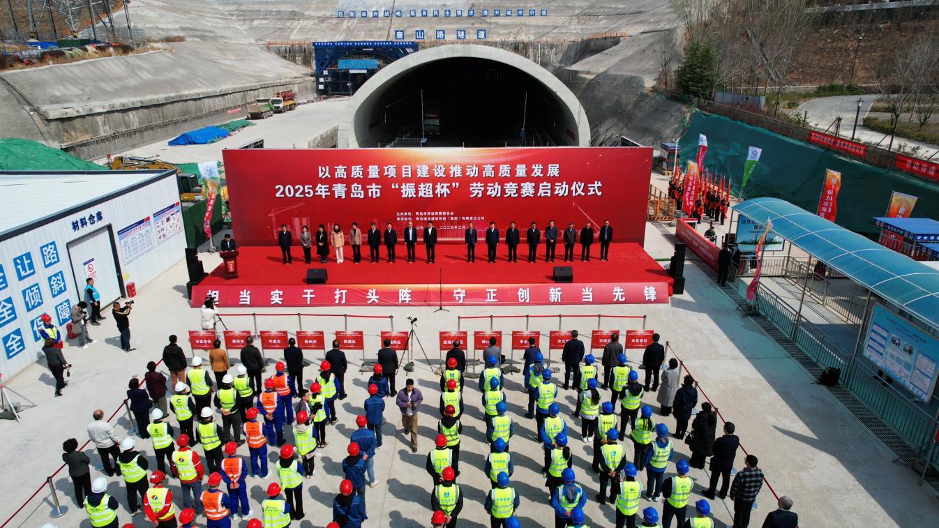 为认真落实青岛市“以高质量项目建设推动高质量发展”动员大会精神,3月26日下午,青岛市“振超杯”劳动竞赛启动仪式在青银高速公路增设唐山路互通及连接线工程项目现场举行,发出劳动竞赛动员令。