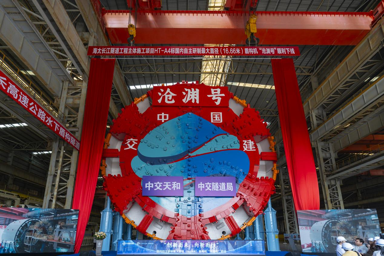 3月26日,我国自主研制的最大直径盾构机“沧渊号”在中交天和常熟制造中心成功下线,将肩负世界最长高速公路水下盾构隧道——海太长江隧道工程左线掘进施工重任。