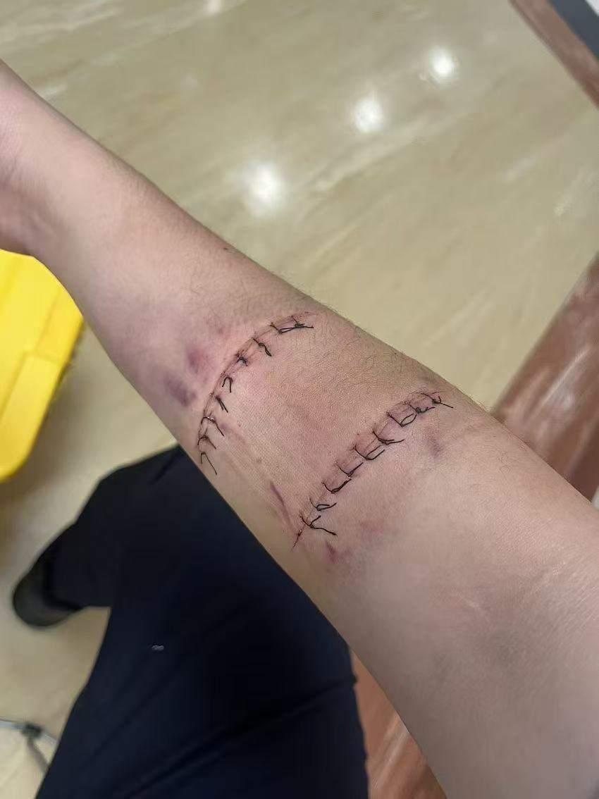 直到伤口愈合,杨建明也从未和家人提及此事。一次在陪女儿玩耍时,5岁的女儿无意间发现了爸爸手臂上的伤疤,小脸上写满了心疼。“爸爸,你疼吗?”杨建明也只能笑着对女儿说,“这是爸爸的勋章,不疼的!”