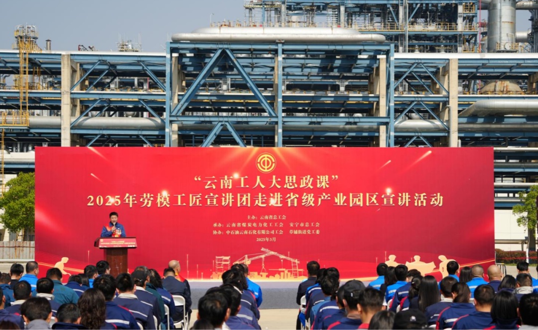 3月28日,云南“中国工人大思政课”2025年劳模工匠宣讲团走进省级产业园区宣讲活动在安宁草铺产业园区中石油云南石化有限公司举办。来自园区2家国有企业和15家非公企业,180余名产业工人参加。活动由云南省总工会主办,云南省煤炭电力化工工会、安宁市总工会承办,中石油云南石化有限公司工会、安宁市草铺街道党工委协办。
