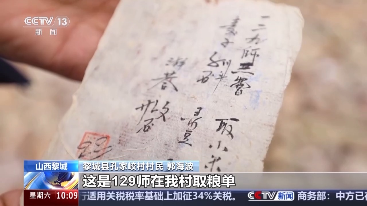 黎城县孔家峧村村民 郭海波:这是我曾祖父给八路军记的账单,大多数已经损坏。这是129师在我村取粮单、救济难民的单子、保粮单。当时日本人扫荡,抓住几户老百姓,拿枪拿刺刀逼着他们问八路军的粮食藏在哪里,但是这些老百姓没有一个人告诉日本人,村民用命在给八路军保粮。