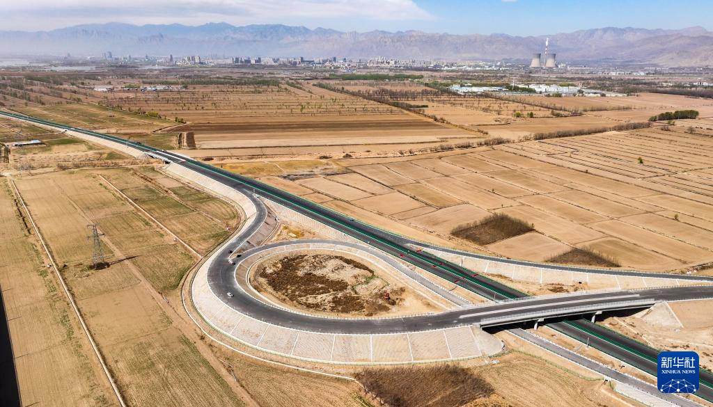 这是建设中的乌玛高速石嘴山互通(4月10日摄,无人机照片)。新华社记者 冯开华 摄