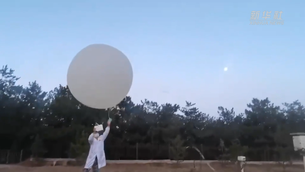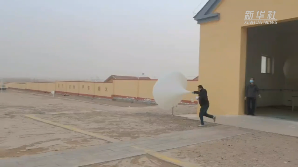 4月11日,呼和浩特市回民区出现大风、扬沙天气,过程极大风速23.2m/s,最小能见度3477m。气象部门工作人员冒着强风准时施放探空气球,全力保障高空气象观测。