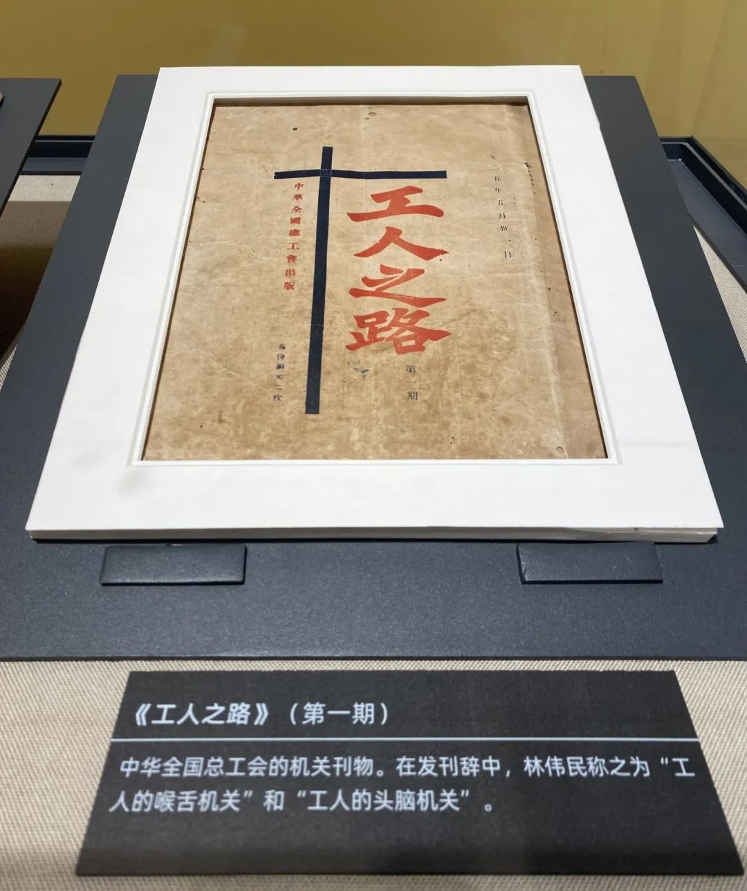 纪念馆陈列着209件套文物,其中镇馆之宝之一,是国家二级文物——中华全国总工会首个机关刊物《工人之路》第一期。林伟民在发刊辞中,称其为“工人的喉舌机关”“工人的头脑机关”。