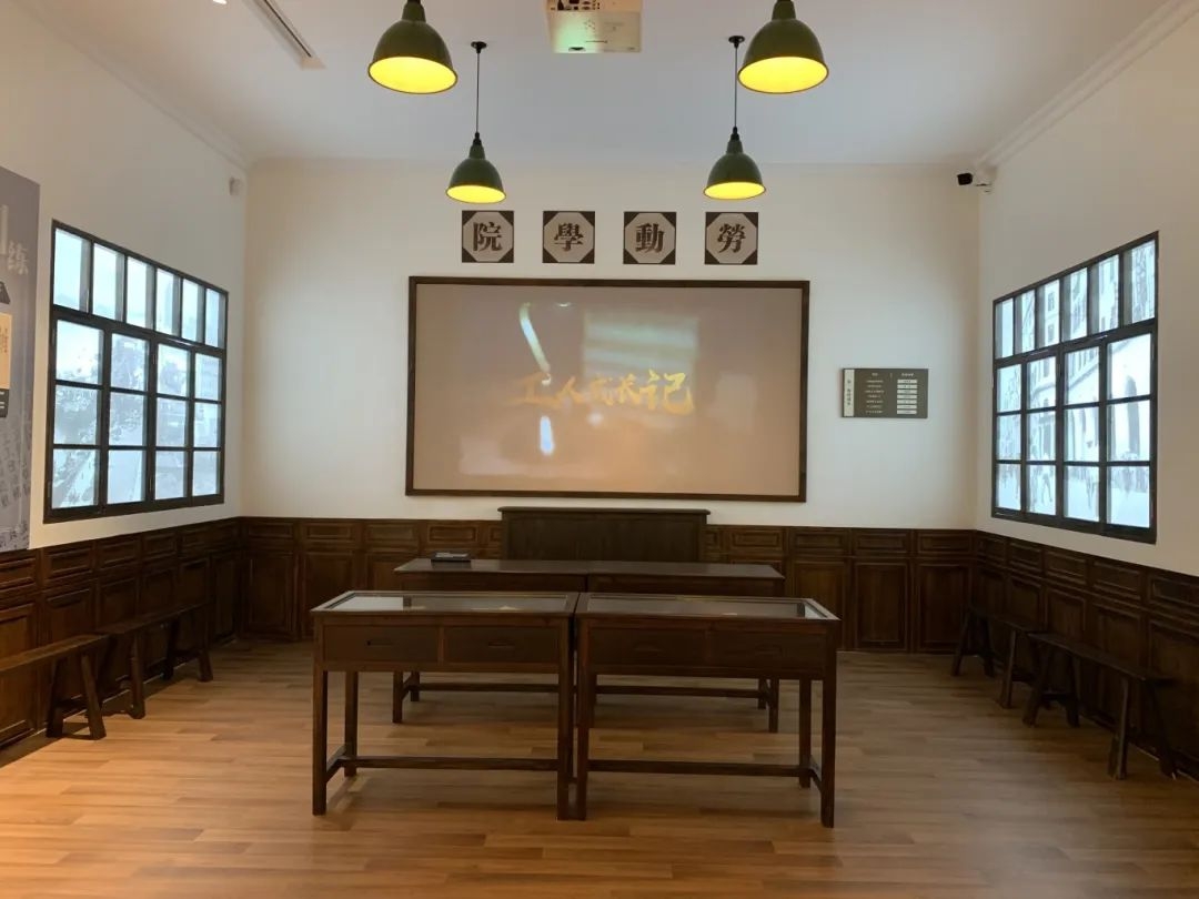 走进中华全国总工会旧址,每步入一个展区,主题场景随之变换,参观情绪相应调整,营造出强烈的观展节奏。观众驻足观看衣物、饭券、车票等文物展品的同时,可通过触控联动平台,深入了解文物背后的故事。文物展示融入工人夜校的课堂陈设中,构成多元素叠加的立体叙事空间。观众静坐课堂,彷佛置身历史现场,能够身临其境地感受工人夜校的历史氛围。新科技与视觉技术的应用,大大丰富了观众的体验感和参与感。