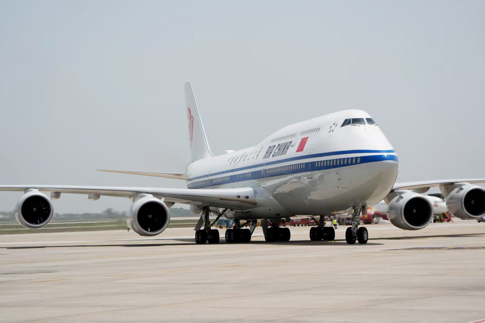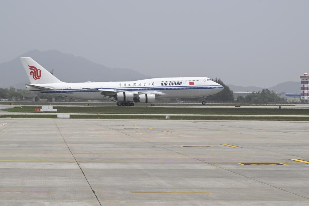 当地时间14日11时29分许,中共中央总书记、国家主席习近平乘坐的专机降落越南河内内排国际机场。