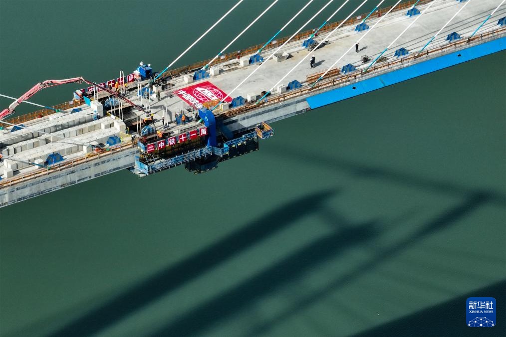 4月14日,由中铁十一局承建的西(安)十(堰)高铁汉江特大桥顺利合龙。汉江特大桥位于湖北省十堰市,全长917.45米,两座主塔高度达186.5米,主跨420米。