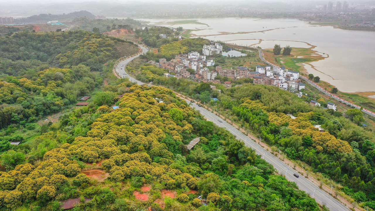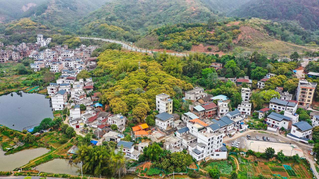 4月13日,广西梧州市龙圩区龙圩镇恩义村绚烂盛开的荔枝花与村庄、道路交相辉映,勾画出一幅壮美的乡村画卷。龙圩镇是著名的古凤荔枝原产地,古凤荔枝以“核小肉厚,蜜味清甜”著称,如今,经过改良的古凤荔枝品质更好,产量更高,成为了当地乡村振兴的主导产业。