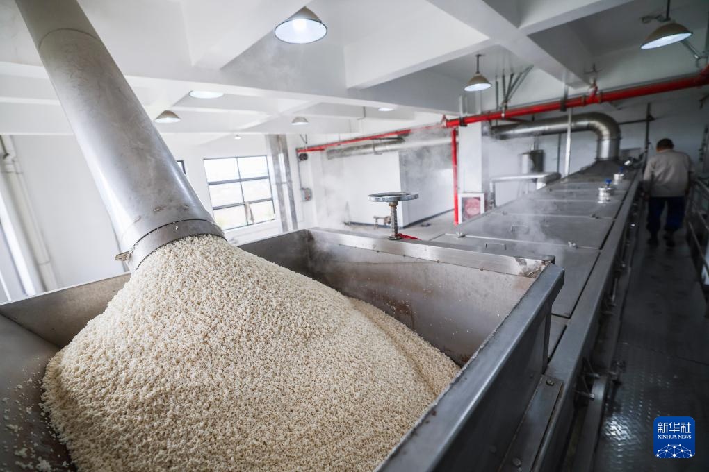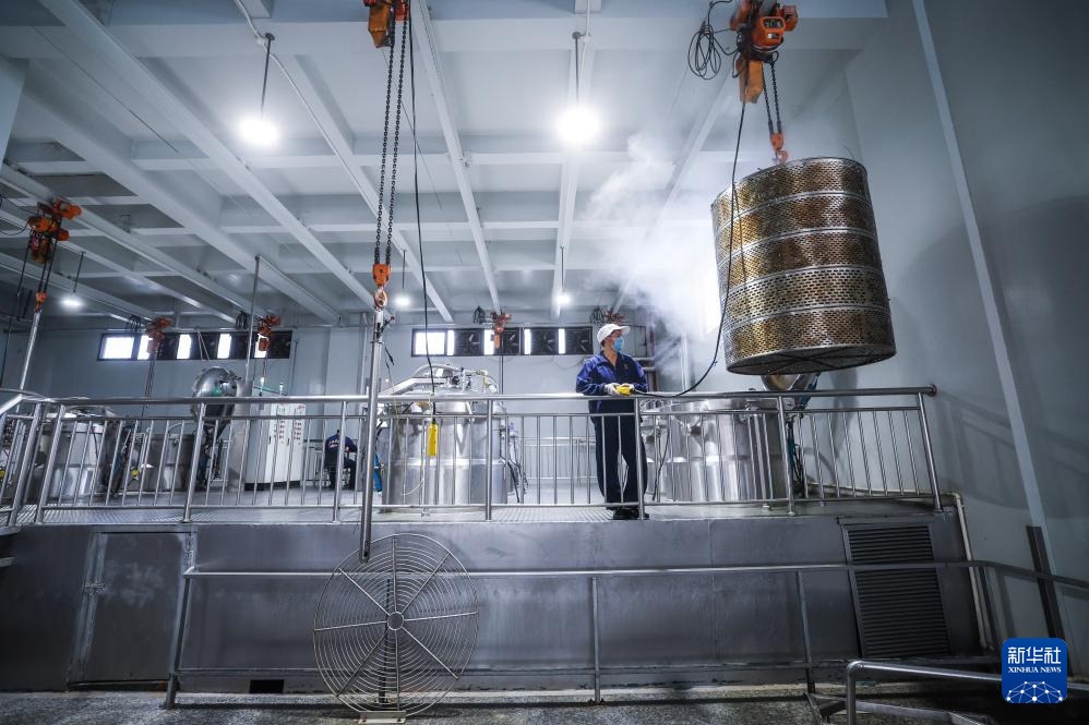 4月16日,在位于嘉兴南湖区湘家荡农业加工园的老字号企业嘉兴酒厂的车间内,自动化蒸米设备在蒸米,为酿酒做准备。新华社记者 徐昱 摄