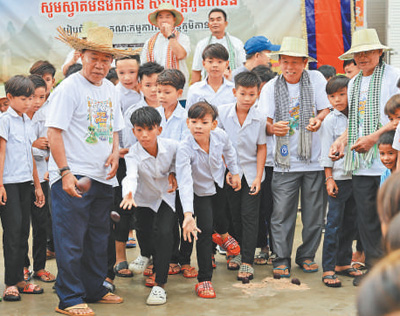 中柬友好扶贫示范村村民庆祝柬埔寨传统新年。人民日报记者 白元琪 摄