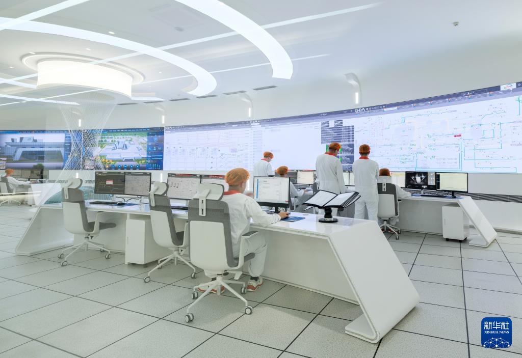 4月17日,在呼和浩特市土默特左旗,工作人员在伊利现代智慧健康谷全球智能制造产业园奶粉全球智造标杆基地智控中心内工作。新华社记者 马金瑞 摄