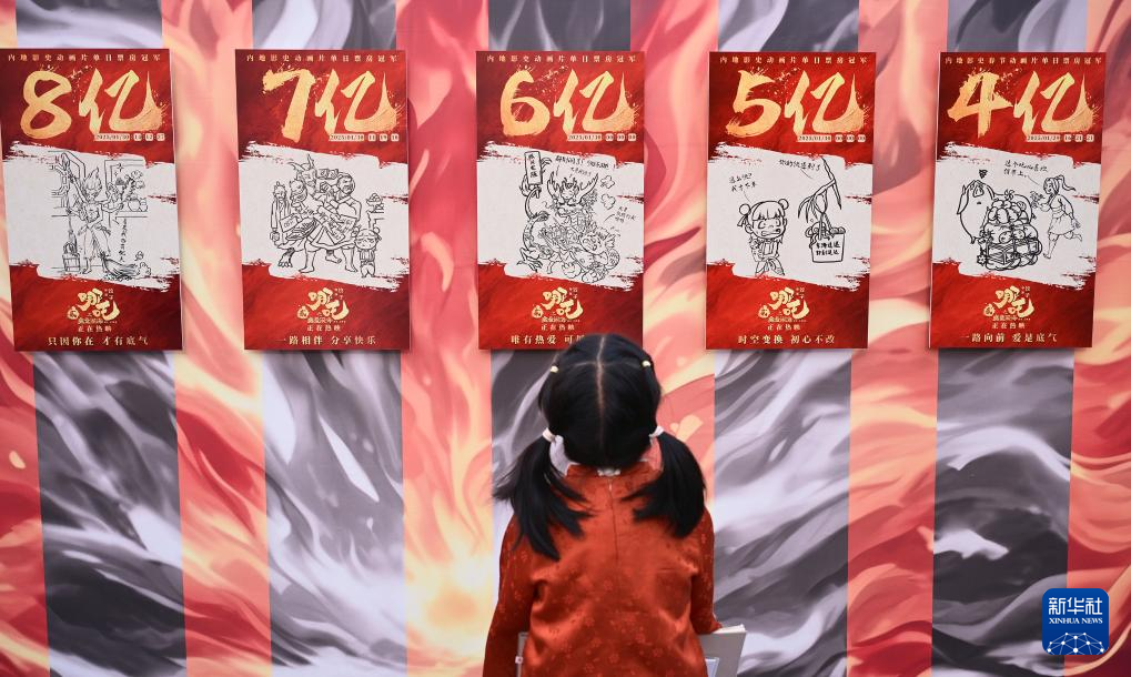 4月19日,观众在电影《哪吒之魔童闹海》破亿手绘海报展上参观。新华社记者 李鑫 摄