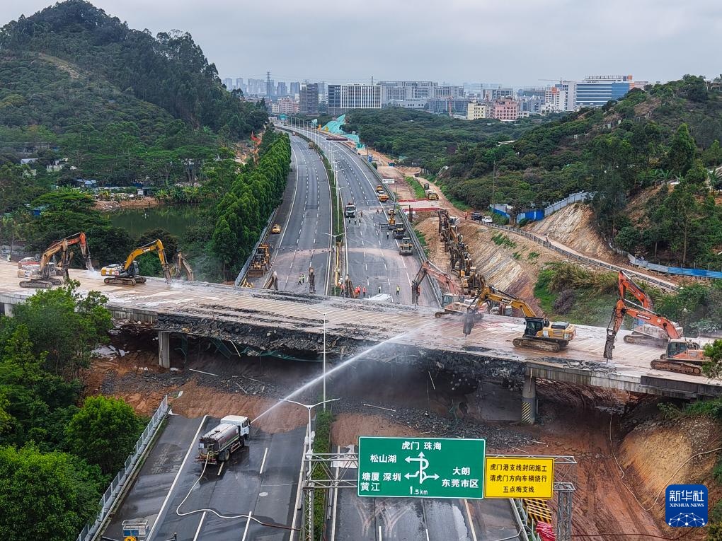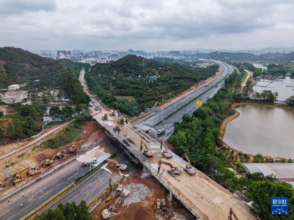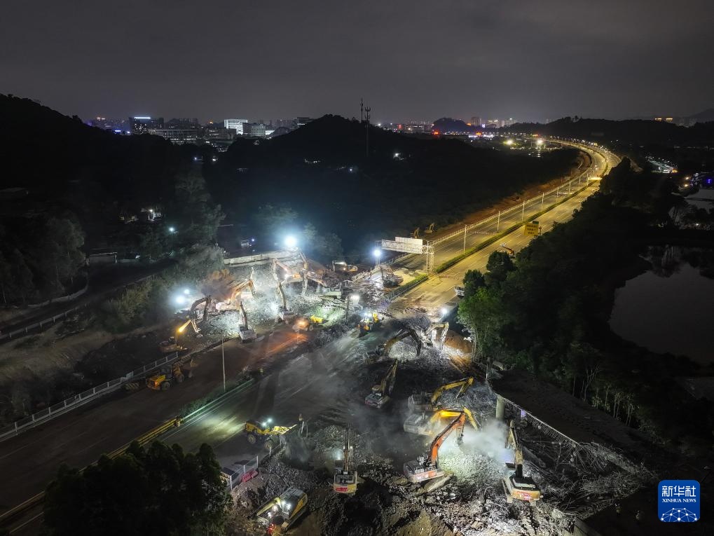 4月20日,由中铁十一局承建的广东东莞常(常平)虎(虎门)高速改扩建工程上跨甬(宁波)莞(东莞)高速分离式高架桥经过20小时连续施工,顺利拆除。