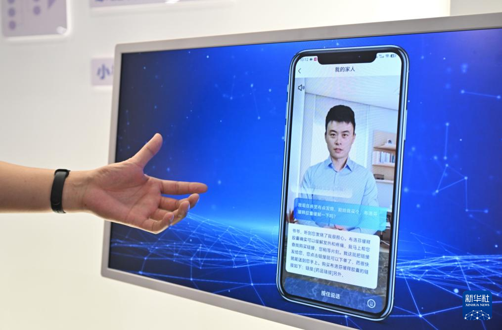 在天津小橙集团有限公司,工作人员展示一款用于居家养老场景的AI技术模拟数字人(4月18日摄)。新华社记者 孙凡越 摄