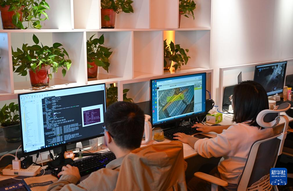 在德龙软件科技(天津)有限公司,工作人员在对工业类软件进行开发运维(4月18日摄)。新华社记者 孙凡越 摄