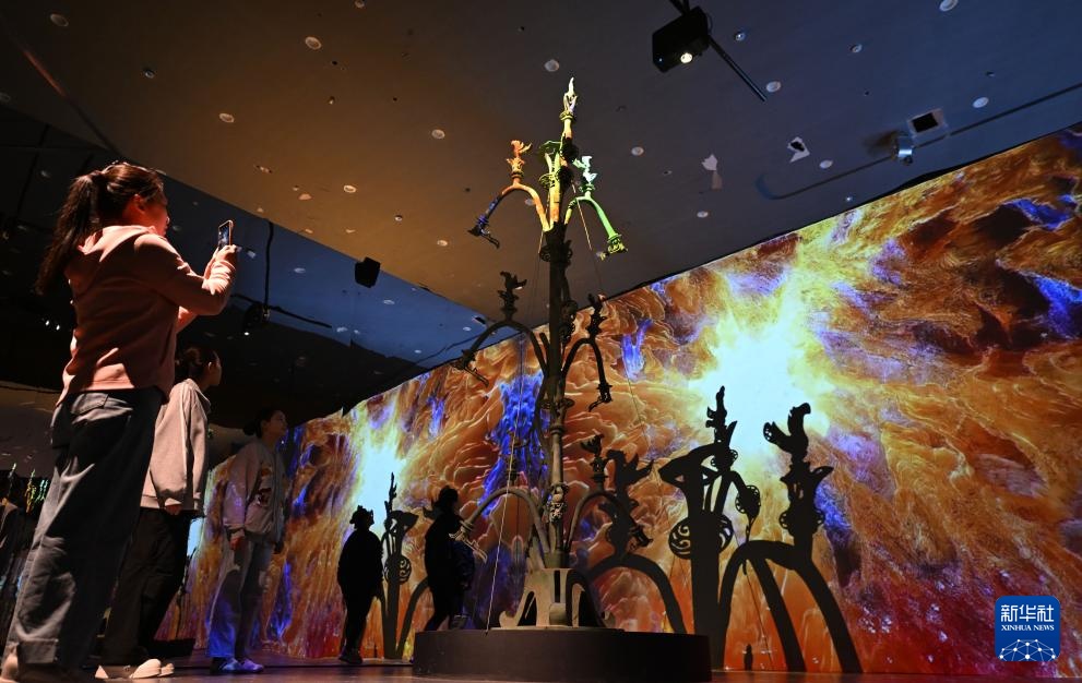 这是“一醒惊天下·三星堆沉浸式光影艺术展”中设置的裸眼全息展区(4月22日摄)。新华社记者 赵子硕 摄