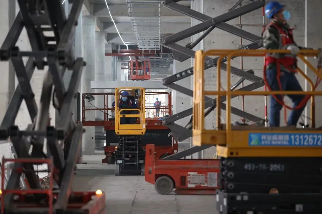 2022年3月10日,北京工人体育场建设工地,工人们正在施工。
