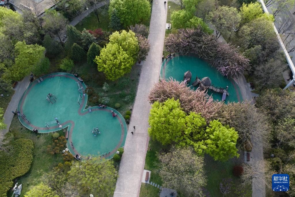 这是西安世博园景区(4月8日摄,无人机照片)。新华社记者 张博文 摄