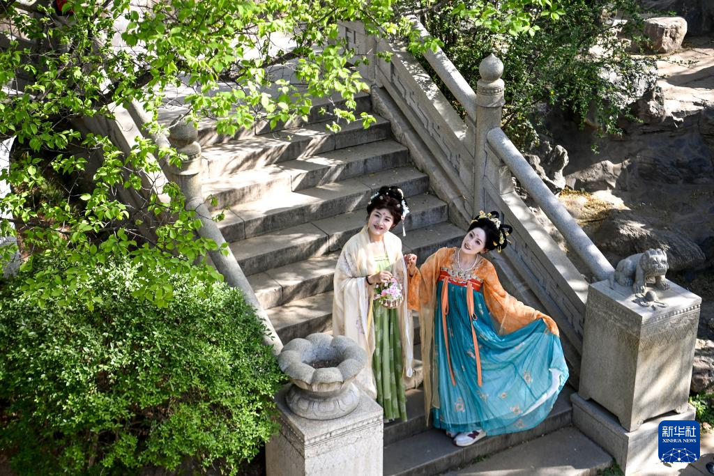 4月14日,游客在西安兴庆宫公园踏青。新华社记者 邹竞一 摄
