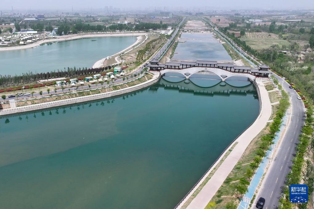 这是西安市鄠邑区天桥湖景区(4月16日摄,无人机照片)。新华社记者 张博文 摄