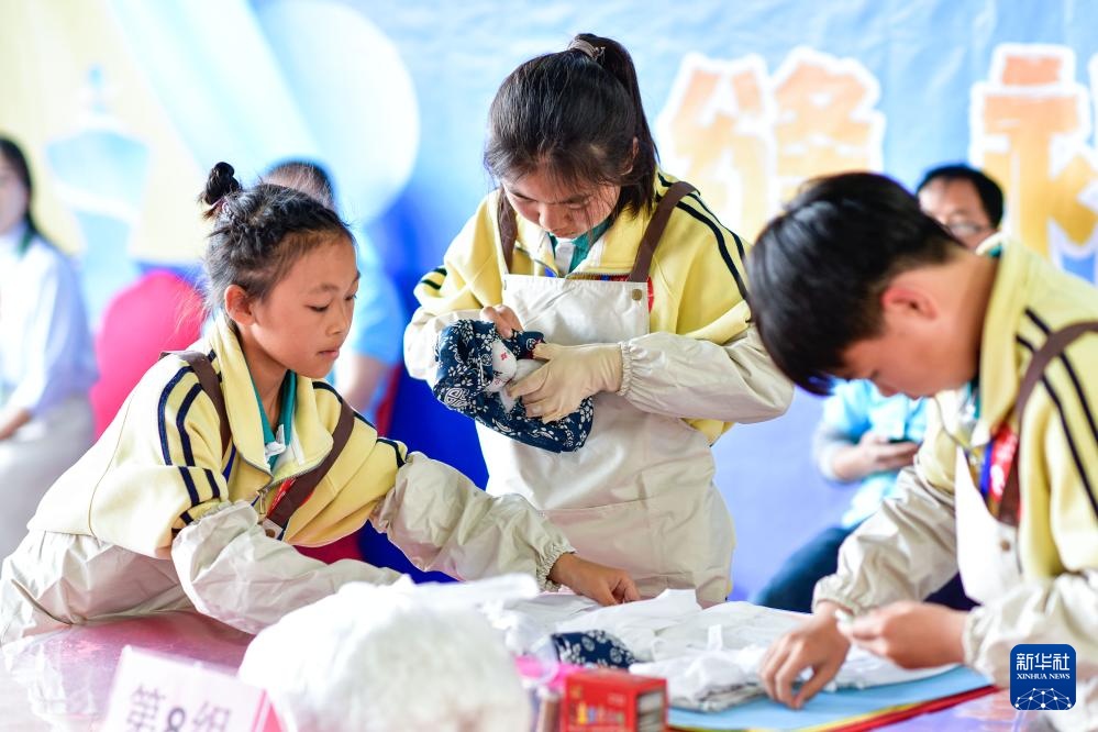 4月27日,学生在贵州省龙里县中等职业学校赛场进行缝补比赛。新华社记者 杨文斌 摄