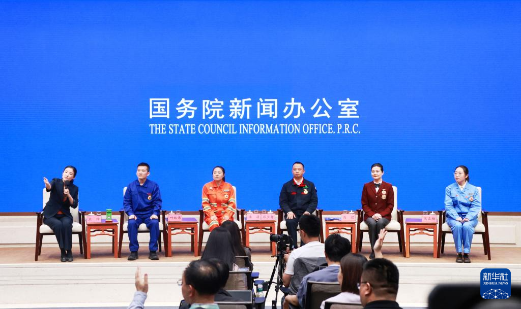 4月29日,国务院新闻办公室在北京举行“新征程上的奋斗者”中外记者见面会,全国劳动模范和先进工作者代表围绕“弘扬劳模精神 勇担时代使命”与中外记者见面交流。新华社记者 潘旭 摄
