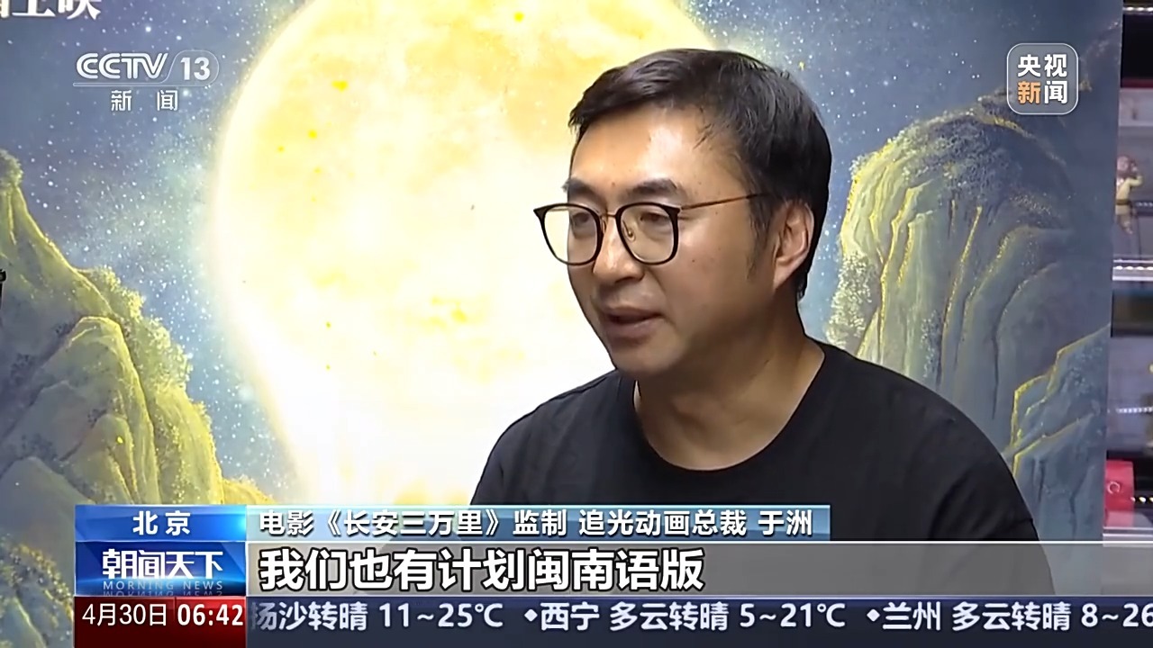 电影《长安三万里》监制、追光动画总裁 于洲:闽南语的电影版本来诵读唐诗,还是别有一番韵味。我们也有计划闽南语版在福建会再次上映,我们也想通过动画电影这种形式,对优秀传统文化的再现,对我们的文化交流也是一次非常好的尝试。