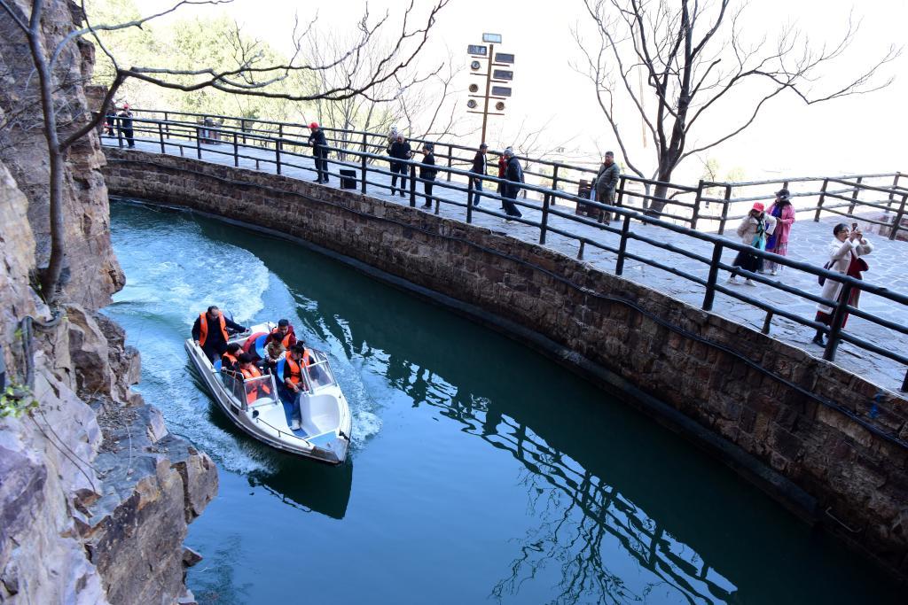 2025年3月18日,游客在红旗渠风景区青年洞附近游玩。新华社记者 朱祥 摄