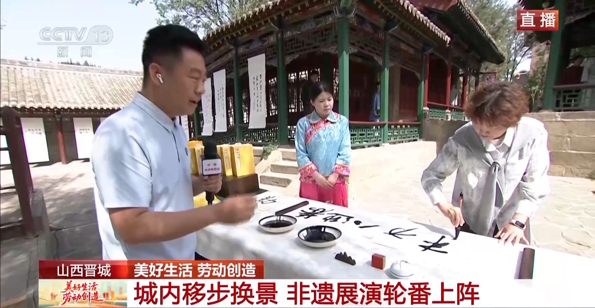在这里,有动也有静,书法家们闹中取静,在一旁挥毫泼墨,笔墨游走于宣纸之上,将皇城相府的雄浑与文人的风雅凝于笔端,恭迎八方来客,展现了皇城村人的热情好客。