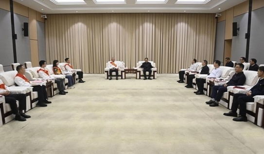 会前,涪陵区委书记黎勇,区委副书记、区政府区长董奕锋,区人大常委会主任李景耀,区政协主席杜海波,与该区2025年荣获全国劳动模范、全市五一劳动奖、全市“工人先锋号”的先进集体和个人座谈。