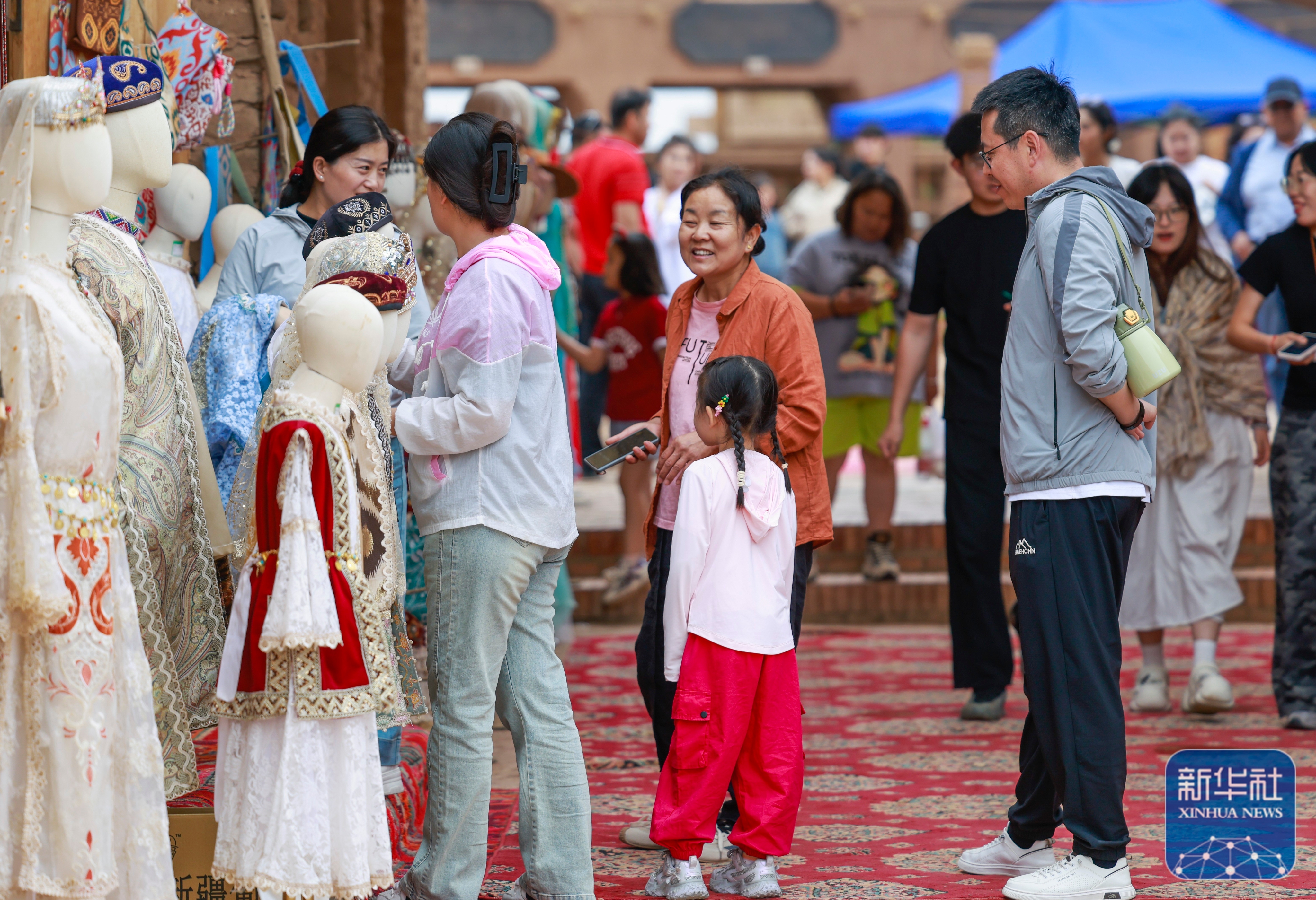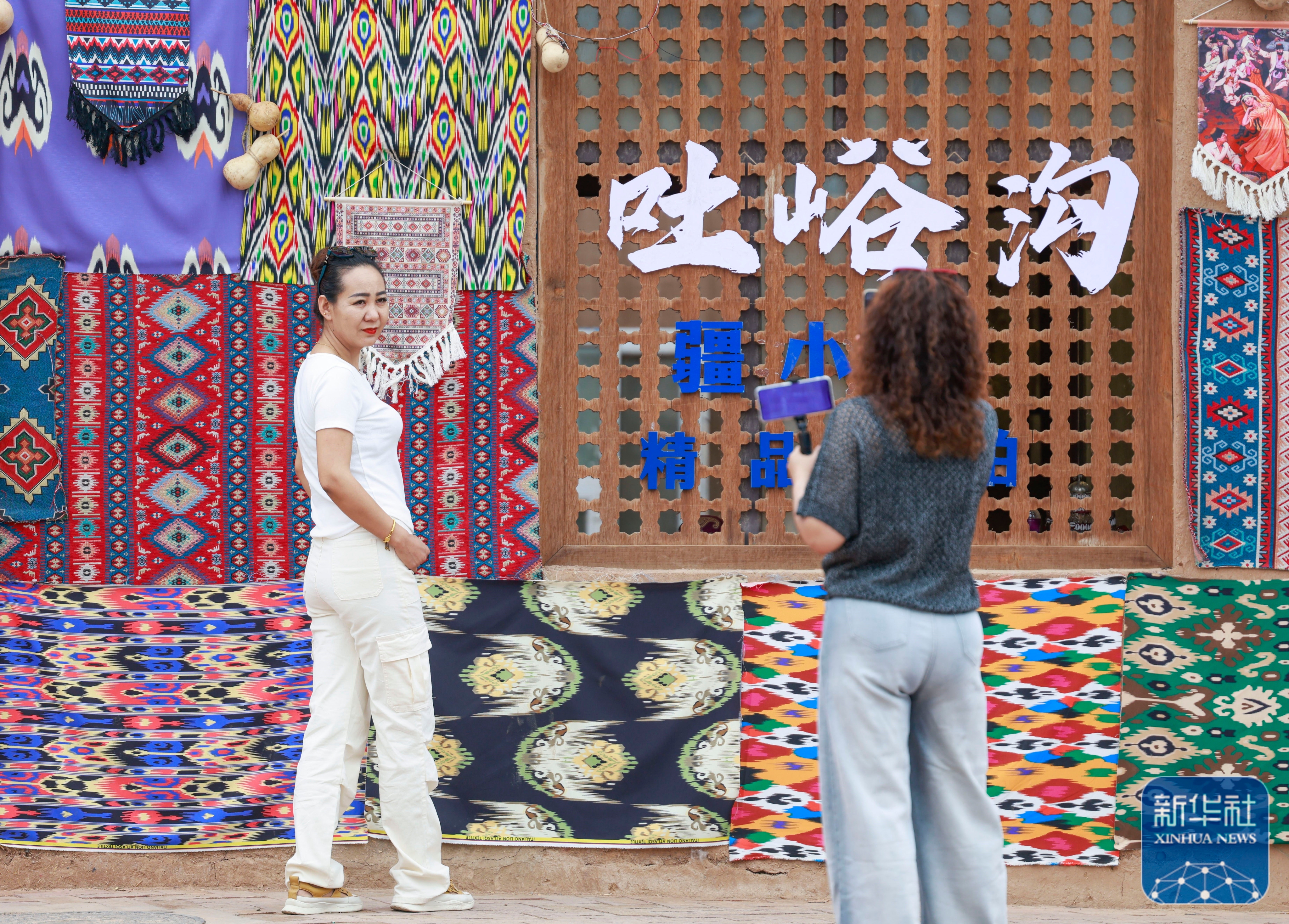 ↑ 5月4日,游客在新疆吐鲁番市鄯善县吐峪沟景区游玩。