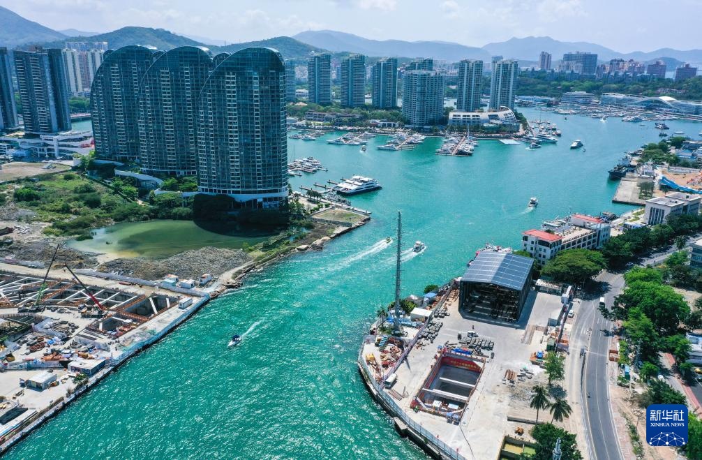 这是5月5日拍摄的三亚河口通道工程项目现场(无人机照片)。新华社记者 赵颖全 摄