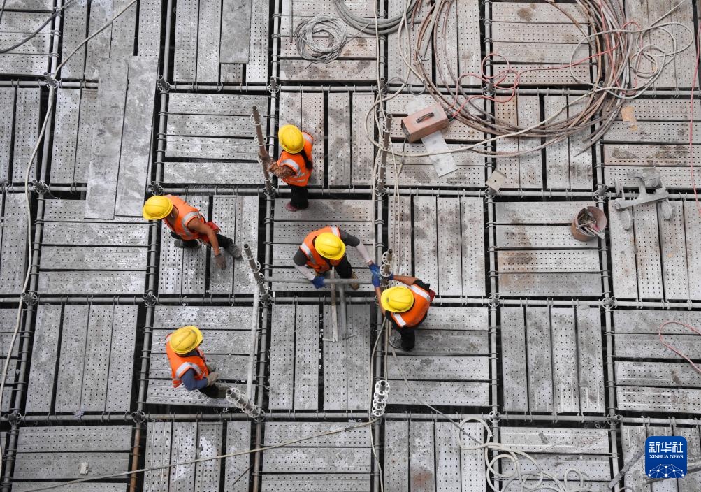 5月5日,工人在三亚河口通道工程项目现场施工。新华社记者 赵颖全 摄