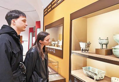 5月5日,俄罗斯观众在莫斯科参观“食味中华——中华古代饮食文化展”。人民日报记者 白紫微 摄