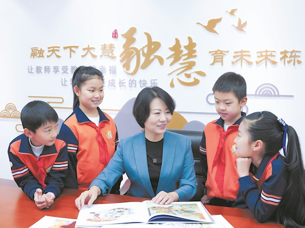 “融天下大慧,育未来栋才”,“育”的不仅是学生,还有青年教师。“兴国必先强师,教师队伍是决定办学水平的重要环节。”褚新红合上手中厚厚的笔记本,又结束了一次课程旁听的她,眼神中透露着对教师成长的殷切期望。“我希望根据每名青年教师的特长,为他们搭建平台,让他们在工作中收获自信、感受幸福。”正是凭借深入教学一线的实践与探索,她构建起“四格六层”融慧教师研训体系,探索教师成长路径,实现分级培养。几年来,各层级优秀教师层出不穷,在天津市“双优课”评比活动中,获15个市级一等奖,在全国创新课堂教学大赛中获20余个全国一等奖,培养出5名正高级教师,150名教师成为各级学科带头人……青年教师们正在褚新红的带领下,为百年老校续写新的辉煌。