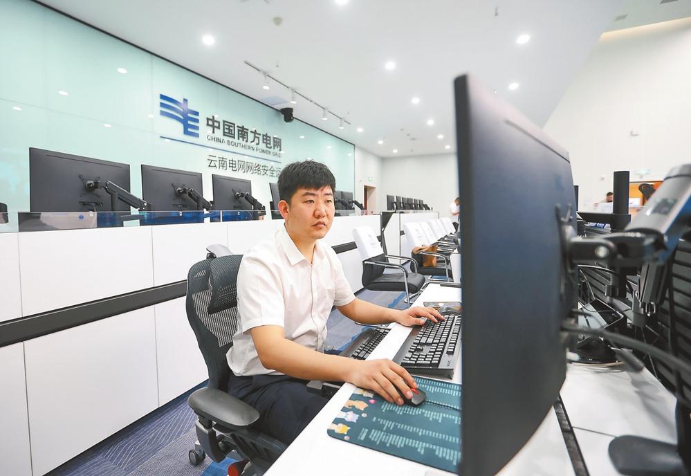 南方电网云南信息中心运行调度控制中心,肖鹏紧盯电脑屏幕,手指飞速敲打键盘,调出防御系统后台代码,插入指令。监控大屏上,代表攻击源的红点被一一拦截,消失在数字防线外……这些犹如科幻电影中的场景,却是南方电网云南信息中心运行调度控制中心副经理、工程师肖鹏的日常工作。