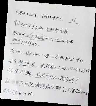 一天,耿红玲与所长邓力众一同走访辖区群众郑某。因郑某听力障碍,耿红玲掏出纸笔,工整写下“可按时吃药”“单位可经常来看你”“要按时吃饭”……仔细折好、抚平边角后,将这张留言条轻轻放入郑某衣服口袋。